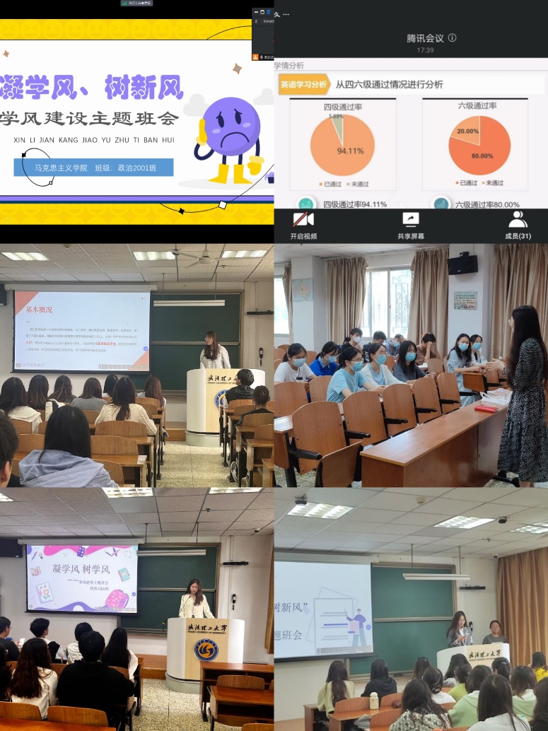 政治2001班与政治2002班通过线上会议方式开展此次主题班会。政治2001班班主任程宏燕老师强调了学风建设对于班级整体发展和学生个人成长的重要性,鼓励同学们积极参与本次班会,共同探讨如何树立良好的学风。政治2002班由班主任任天成老师主持此次班会。班主任任天成老师强调了良好的学风对班级管理进步的重要性,他总结到,学风建设需要班级所有人共同的努力,共同营造优良学风,融洽班风,互相帮助,相互学习,共同进步。