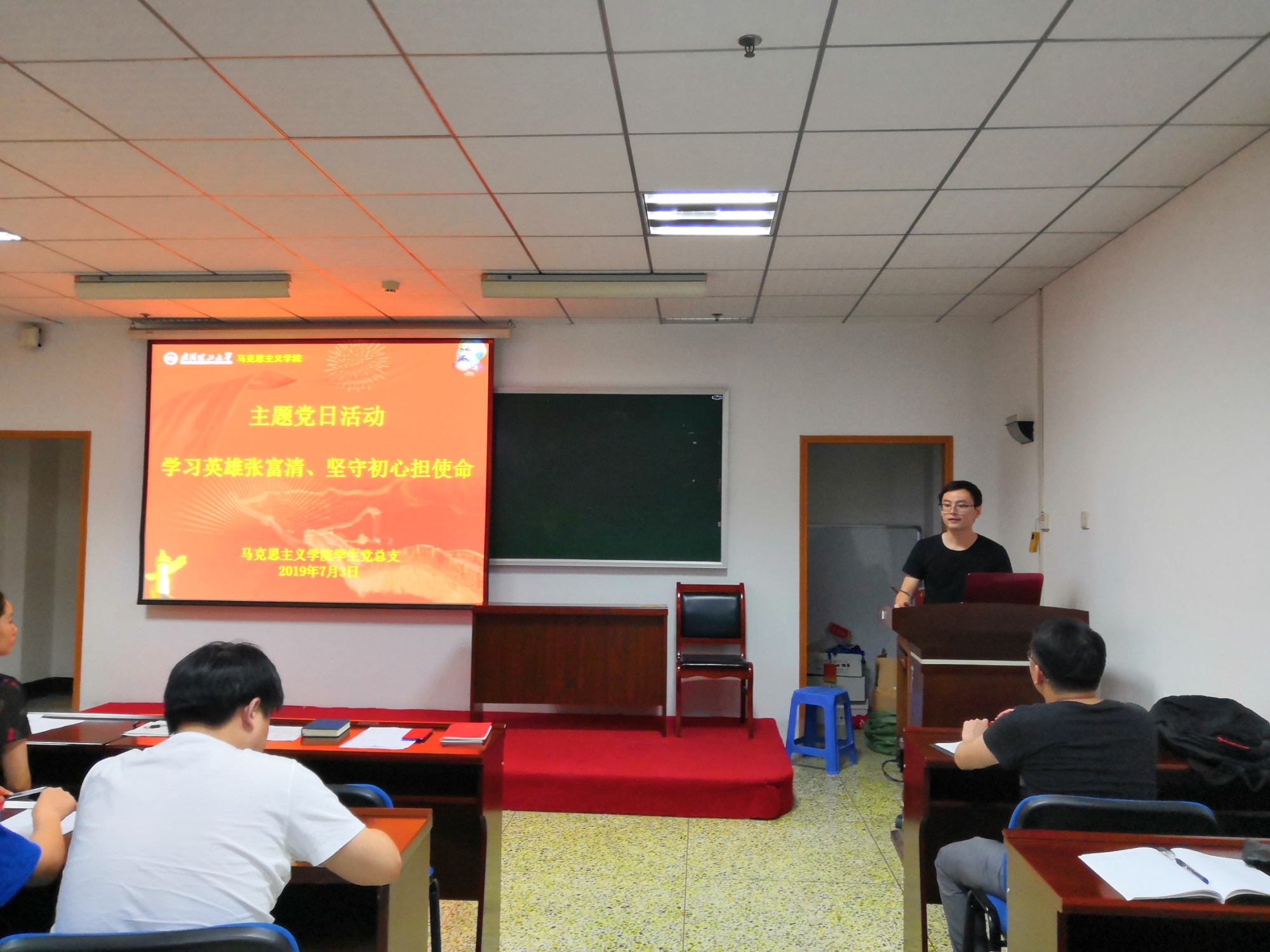 为响应习近平总书记对张富清同志先进事迹作出的重要指示,我院学生党总支于7月3日晚上七点,在学院1207学术报告厅组织开展了以“学习英雄张富清、坚守初心担使命”为主题的党日活动。此次活动由17级党支部书记操典同志主持,学院学生党总支、各学生党支部党员和入党积极分子参加了此次活动。