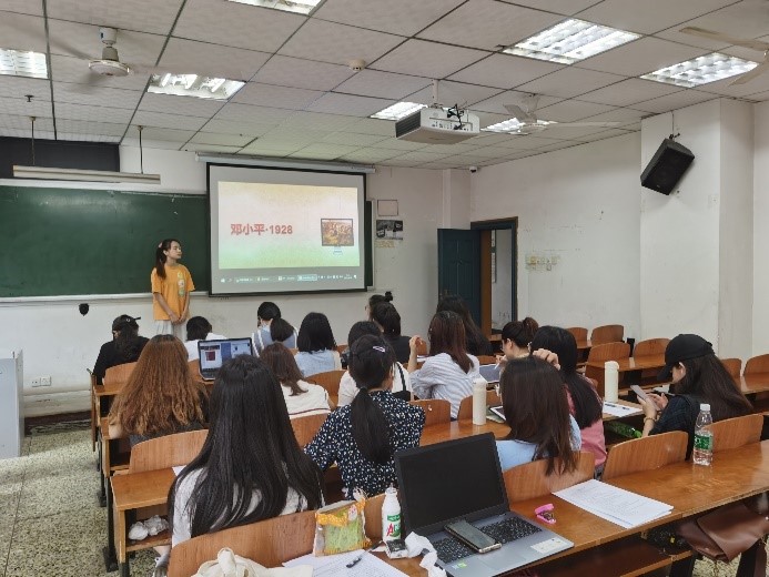 随后,团员们从五四运动、中共一大的召开以及南昌起义等方面,从历史的瞬间感悟革命先辈无私奉献、敢于牺牲的革命精神。通过讲解与学习中国共产党在发展过程中的重大节点与革命人物事迹,团员们更加深刻地认识到党在国家发展与中华民族伟大复兴路中的坎坷经历与英明领导。陈洁梅同学感悟道:“从上海嘉兴南湖小船上的’一大’到人民大会堂的’十九大’,中国共产党走过了百年艰苦卓绝的发展历程,作为青年学生,我被吾辈先烈们艰苦奋斗、砥砺前行的伟大精神深深触动,这让我更加坚信,在中国共产党的带领下,国家必然会有美好的未来!”她的发言获得了热烈的掌声,也将本次活动推向的高潮。