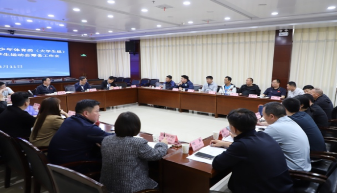 4月11日,湖北省学生体育协会2026年竞赛工作会议暨湖北省第十四届大学生运动会赛前技术指导会在十堰市举行。学校作为湖北省学生体育协会理事长单位,牵头组织本次会议,来自省教育厅、十堰市教育局、十堰市体育局、省学体协办公室、各单项委员会及相关高校的60余名代表参会。